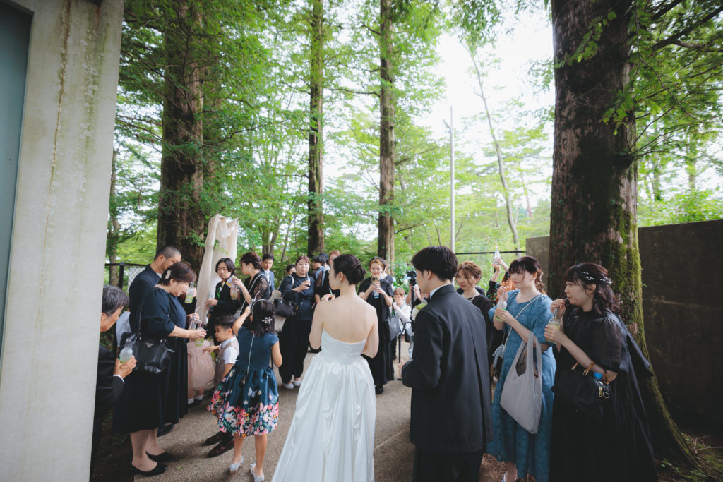 解放感抜群の緑の中でのウェディングは、ゲストにとっても思い出になるでしょう。