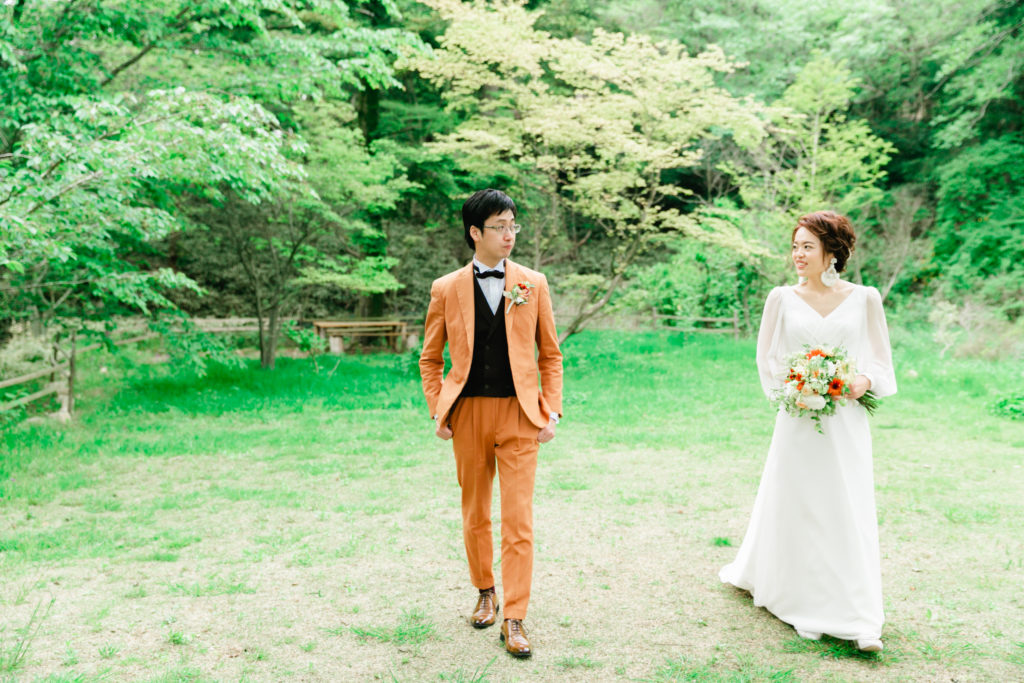 自然の中で過ごす結婚式の時間は、いつもどおりの自然なふたりを感じられるような気がします。ゲストの自然な笑顔もあふれます。