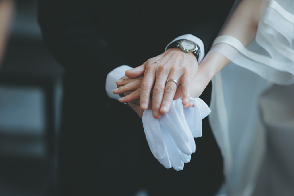 結婚式の中ではバージンロードを歩き親御様から新郎様への受け渡しの瞬間や、指輪交換のお時間など「手」にフォーカスがあたるお時間は沢山ございます。