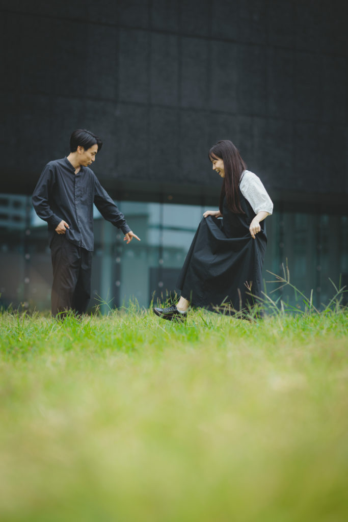 美術館の外周りにある芝生のエリアでは、私服のおふたりと自然な姿の撮影を行いました。