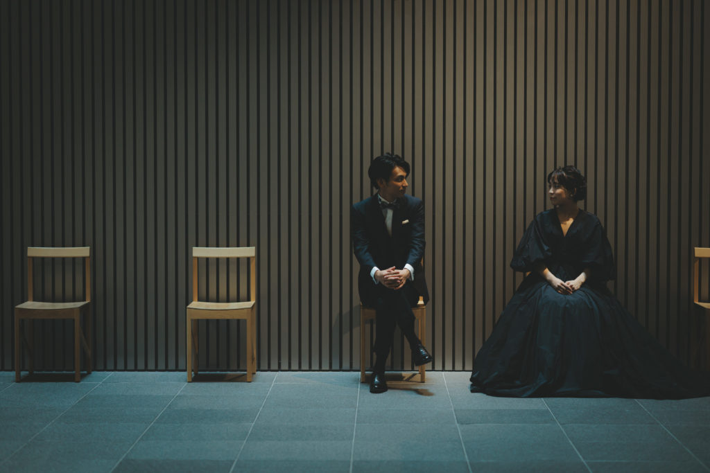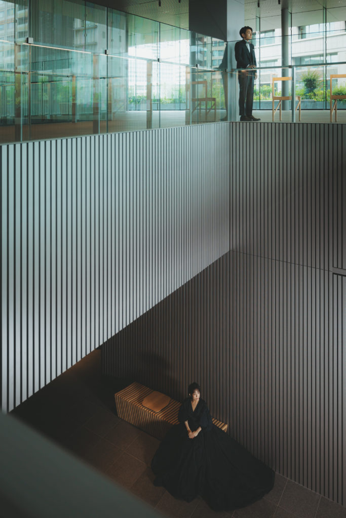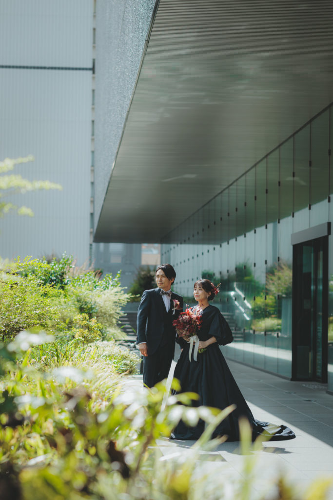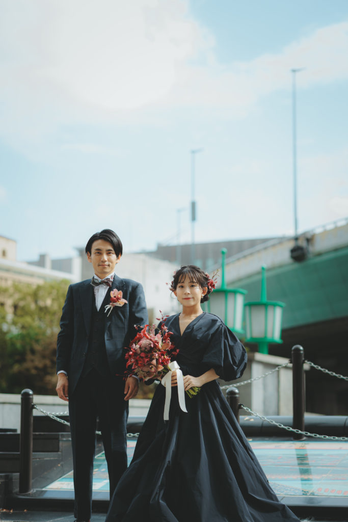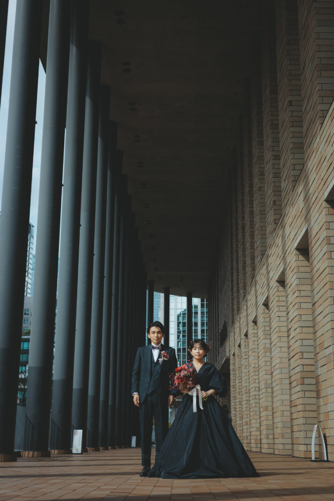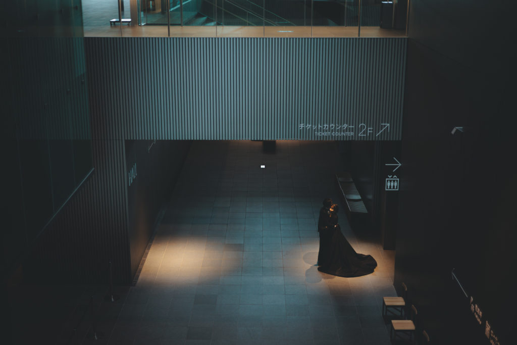 撮影に向けてお選びいただいた、ドレスとタキシードに身を包み、中之島美術館から撮影スタートです。