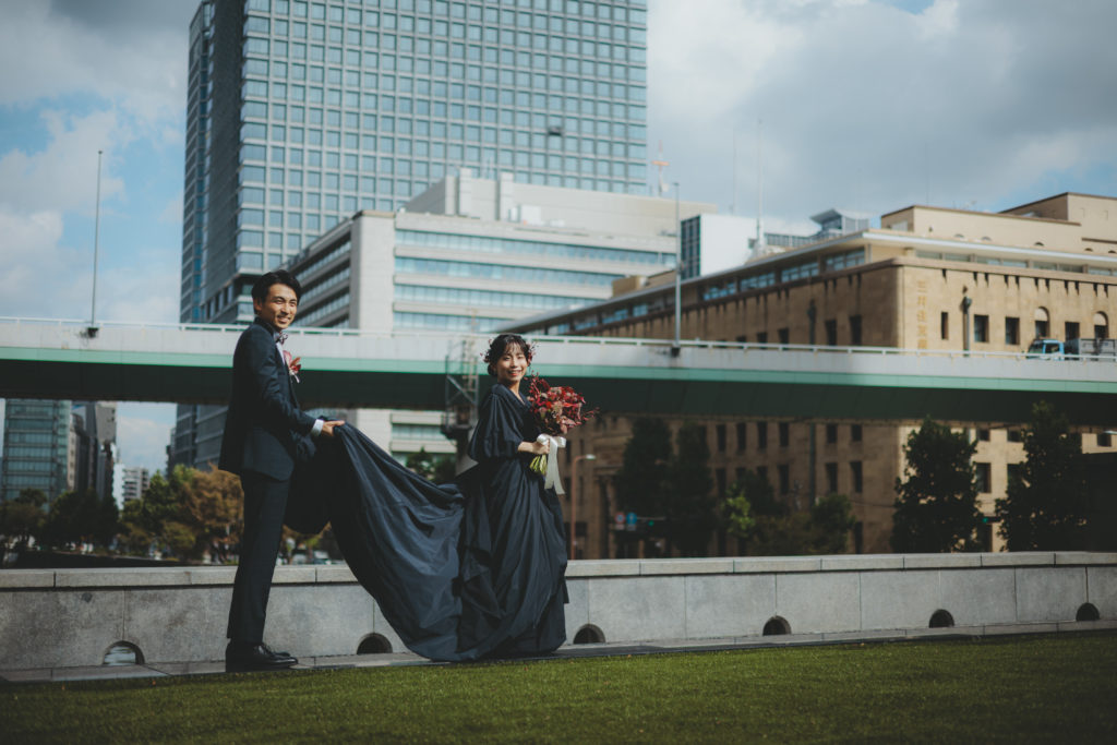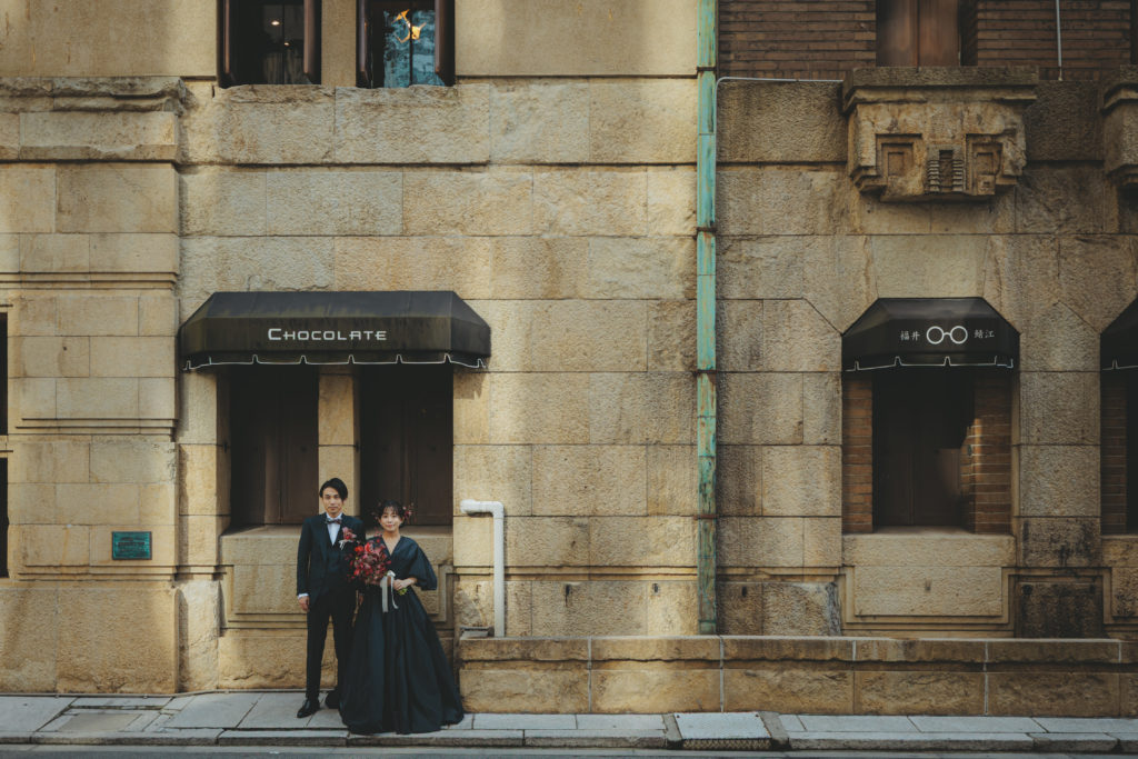 おふたりはアートを見に行かれたり、歴史的建造物がお好きな背景もあり大阪の街並みを歩きながら芝川ビルへの道のりを撮影場所にお選びいただきました。