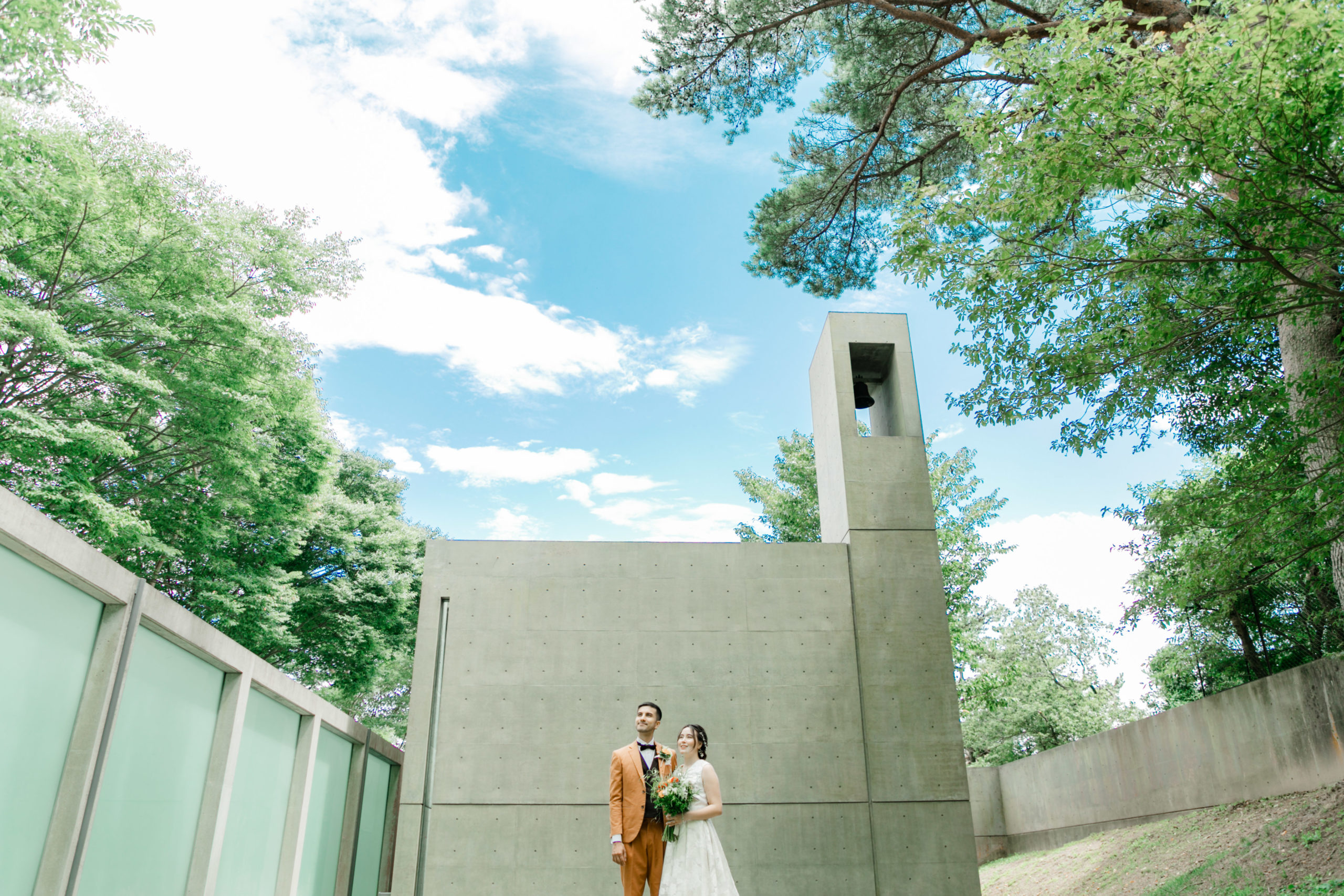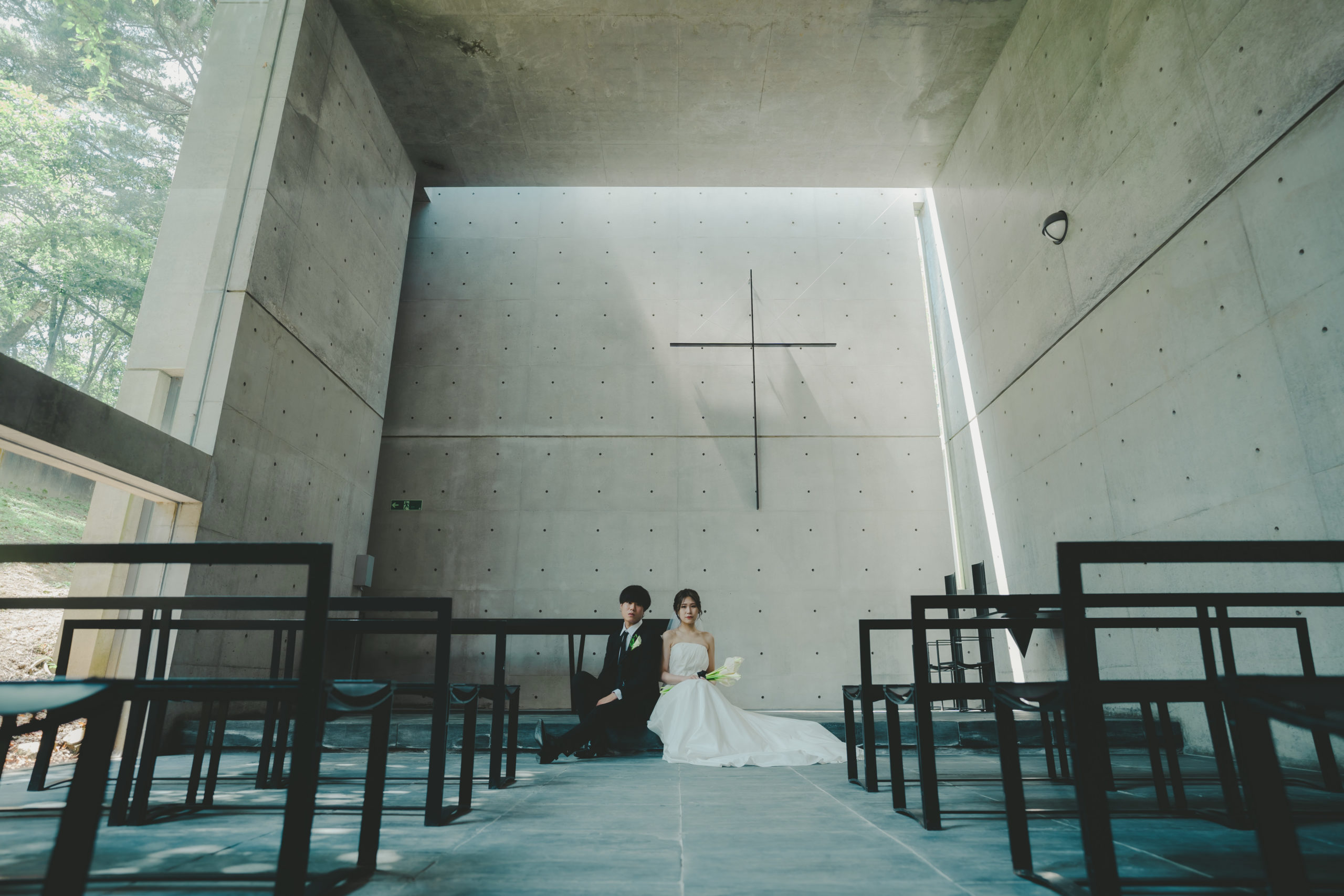 山の中にひっそりと佇む教会は静かで非日常感を感じながら、撮影が叶います。